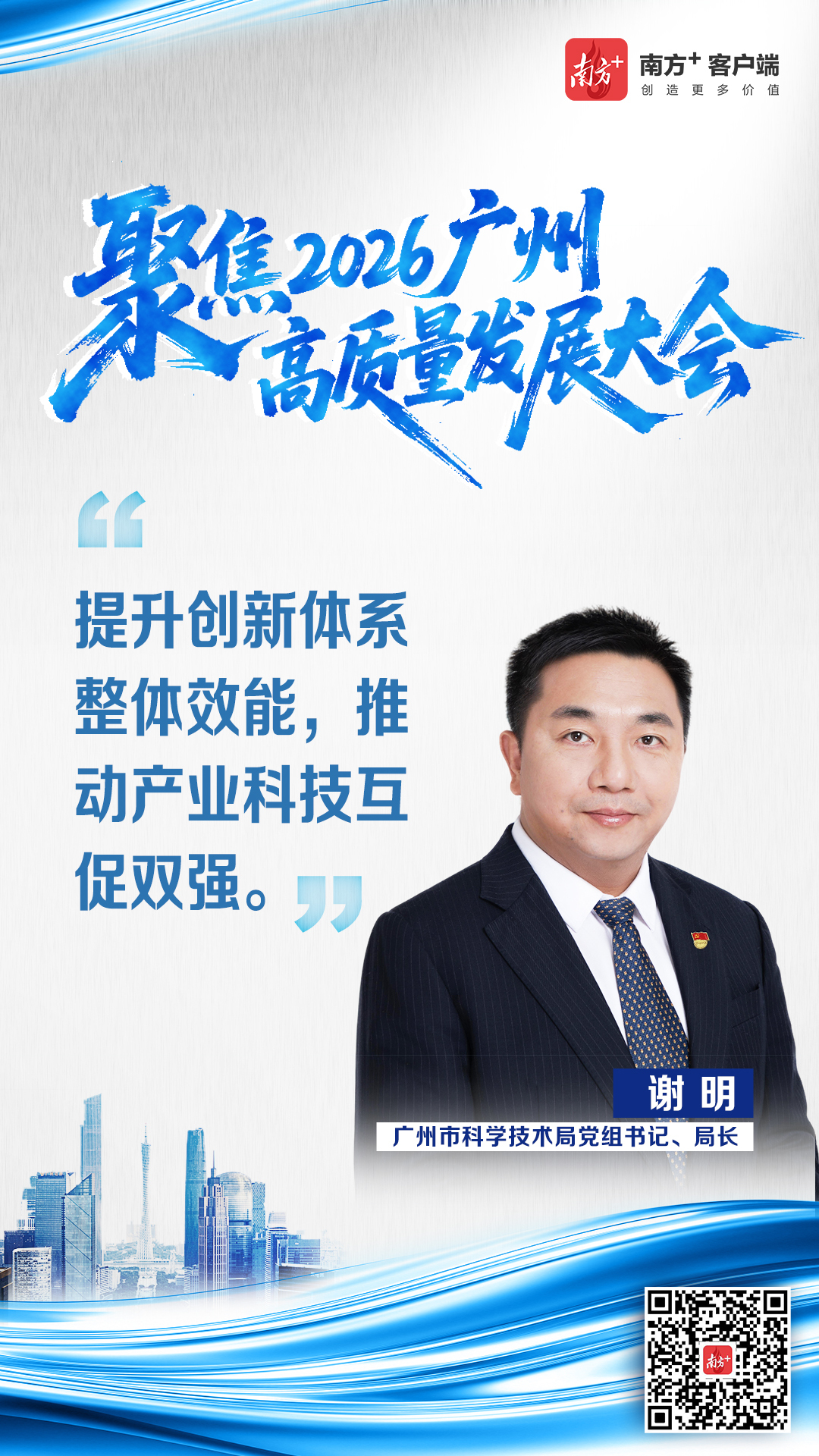 广州市科学技术局党组书记、局长谢明表示,全市科技系统将落实省、市部署要求,锚定建设科技创新强市目标,发挥市委科技委统筹作用,加强科技创新全领域布局,增创新优势、实现新突破,以产业科技互促双强谱写广州高质量发展新篇章。