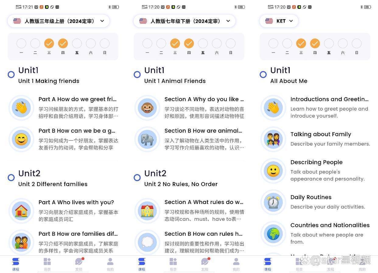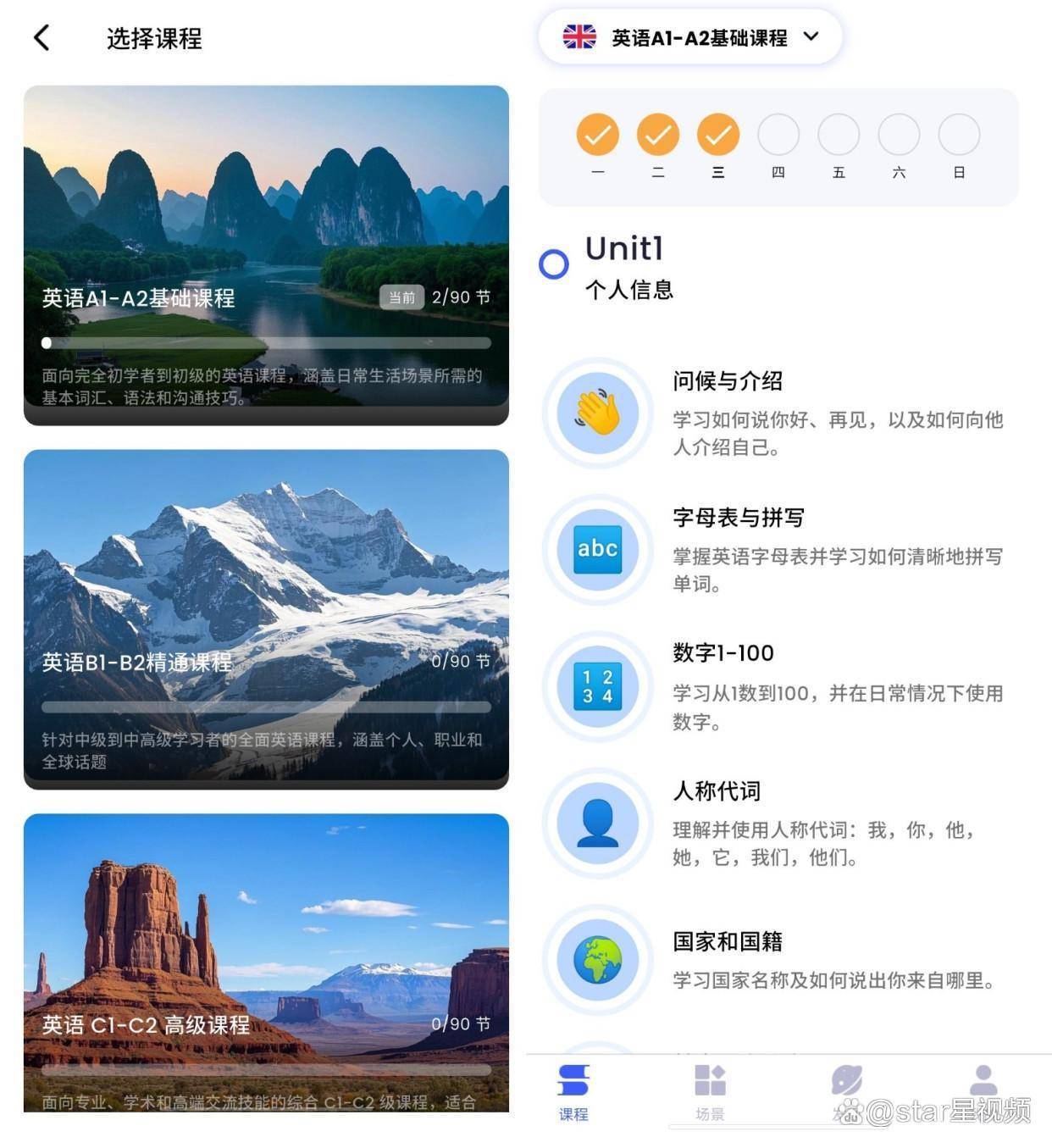 星空外语(SkyLingo)App支持快速单元学习,每个知识点仅需三分钟即可完成,让用户能高效利用零碎时间进行英语口语提升,轻松融入日常学习节奏。
