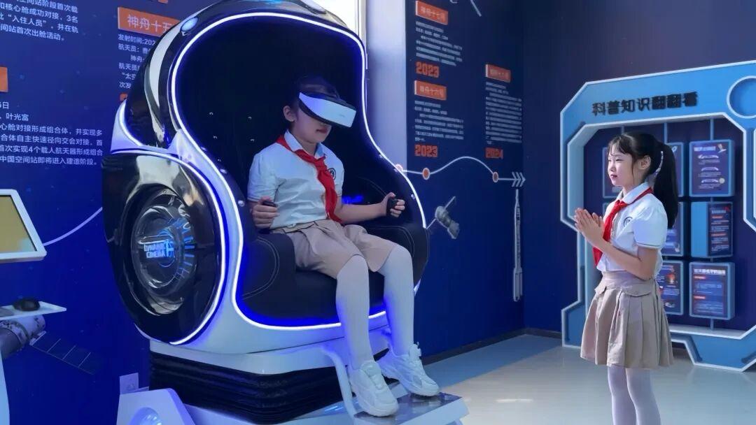 走进泰和小学,科技气息扑面而来。航空航天区、高铁区、AI主题区等场景,与VR太空舱、VR体验门等互动设备,共同构建了一个沉浸式的“全域科学探索场域”。背后支撑的“星火智慧屏幕软件”,如同校园的智慧大脑,实现多屏协作、智能互动与资源动态整合。