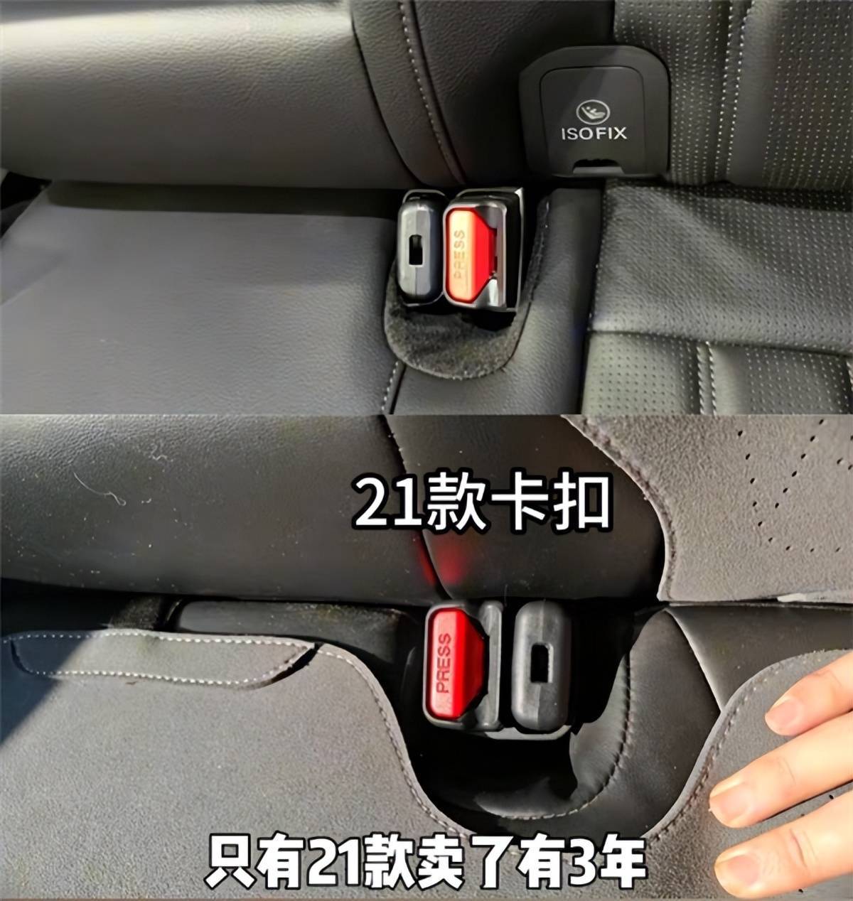 要么中间乘客系不上安全带,要么左边乘客无法固定,就算勉强都系上,中间的人也会被安全带勒得不舒服,行动受限。这位车主说,自己平时很少用到后排中间座位,若不是父母频繁乘坐照顾孩子,可能至今都不会发现这个问题。