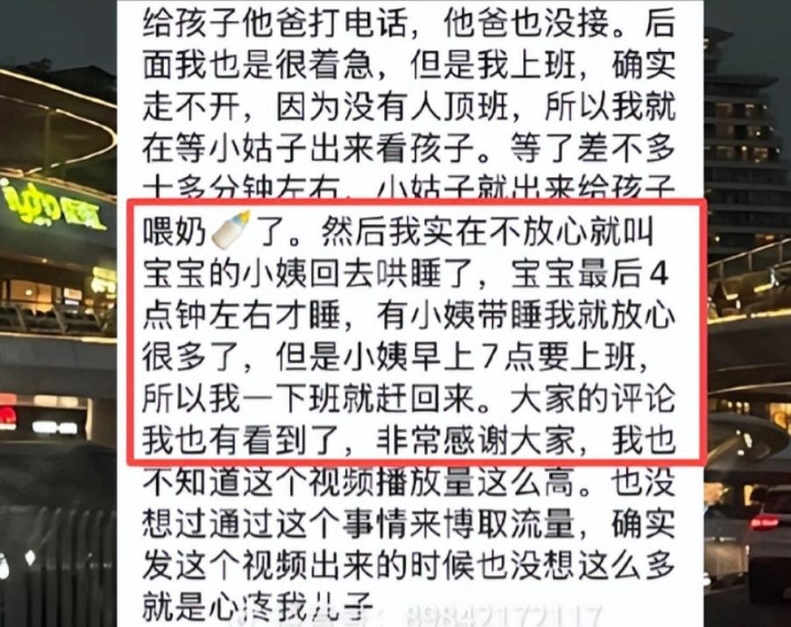 她当场就给孩子爸打电话催,可怎么催都没用,还是迟迟没人出现,最后她实在没办法,只能让自己的妹妹连夜赶过去顶上,守着孩子一直到凌晨四点,孩子才终于睡着,争议真正卡住的点,其实就卡在这儿,孩子到底是自己待了几分钟,还是十多分钟。