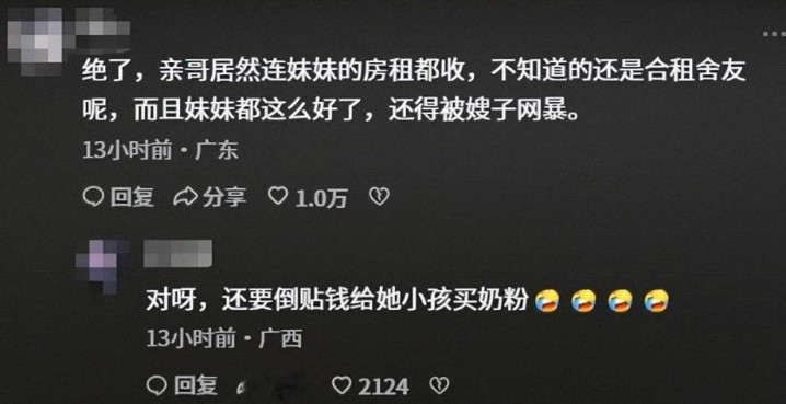 小姑子这边又出钱又出力,带娃带到后半夜,奶粉尿不湿也买过,合住还贴房租,可孩子亲爹呢,关键时候被护得严严实实,干干净净地隐身,反倒把小姑子推到前面去挨骂,挨训,挨网暴,也幸亏现在网友不太好糊弄了,愿意去扒时间线,翻旧视频,对细节,不然小姑子这一下,真可能就白白挨上一场飞来的横祸。